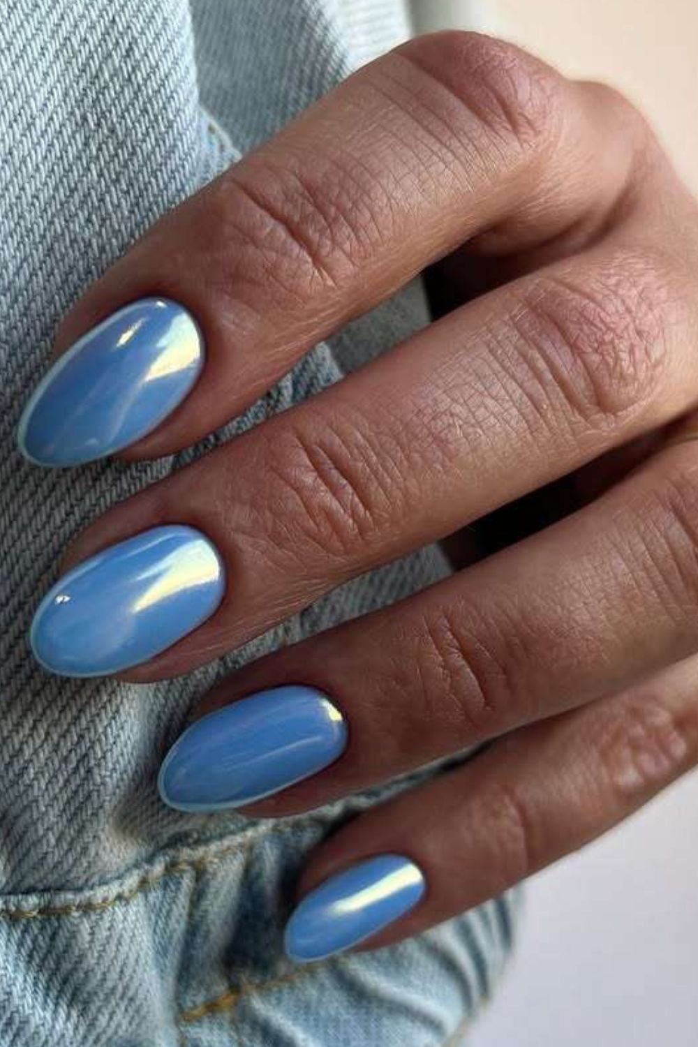 Icy blue nails resemble frozen lakes and fresh snow. This soft pastel shade is perfect for a clean, minimalist winter look and works especially well on short or almond-shaped nails.