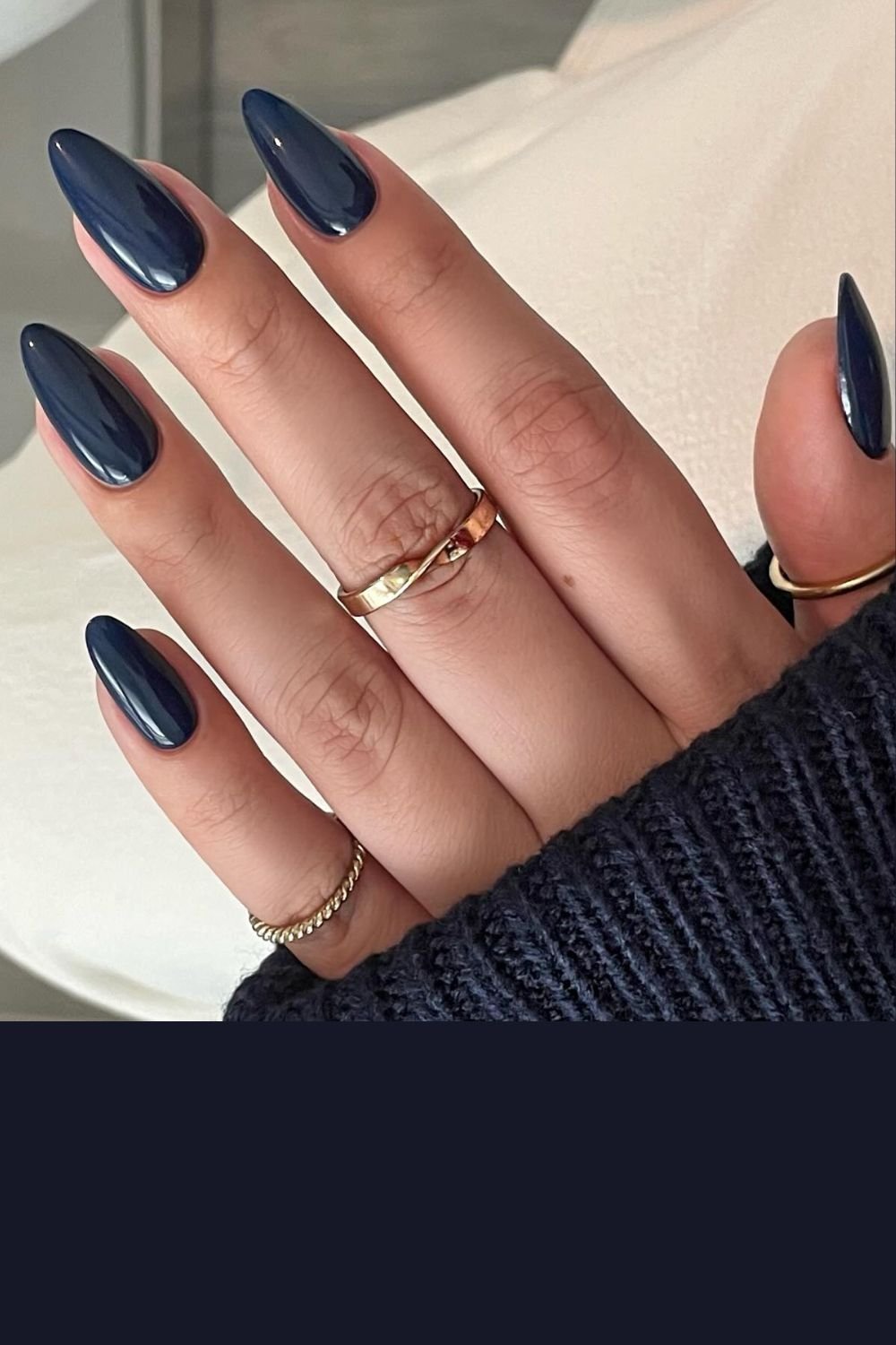 Navy blue nails offer a deep, classic winter vibe. This shade looks luxurious and professional while still feeling seasonal. Glossy navy nails are especially popular during winter events.